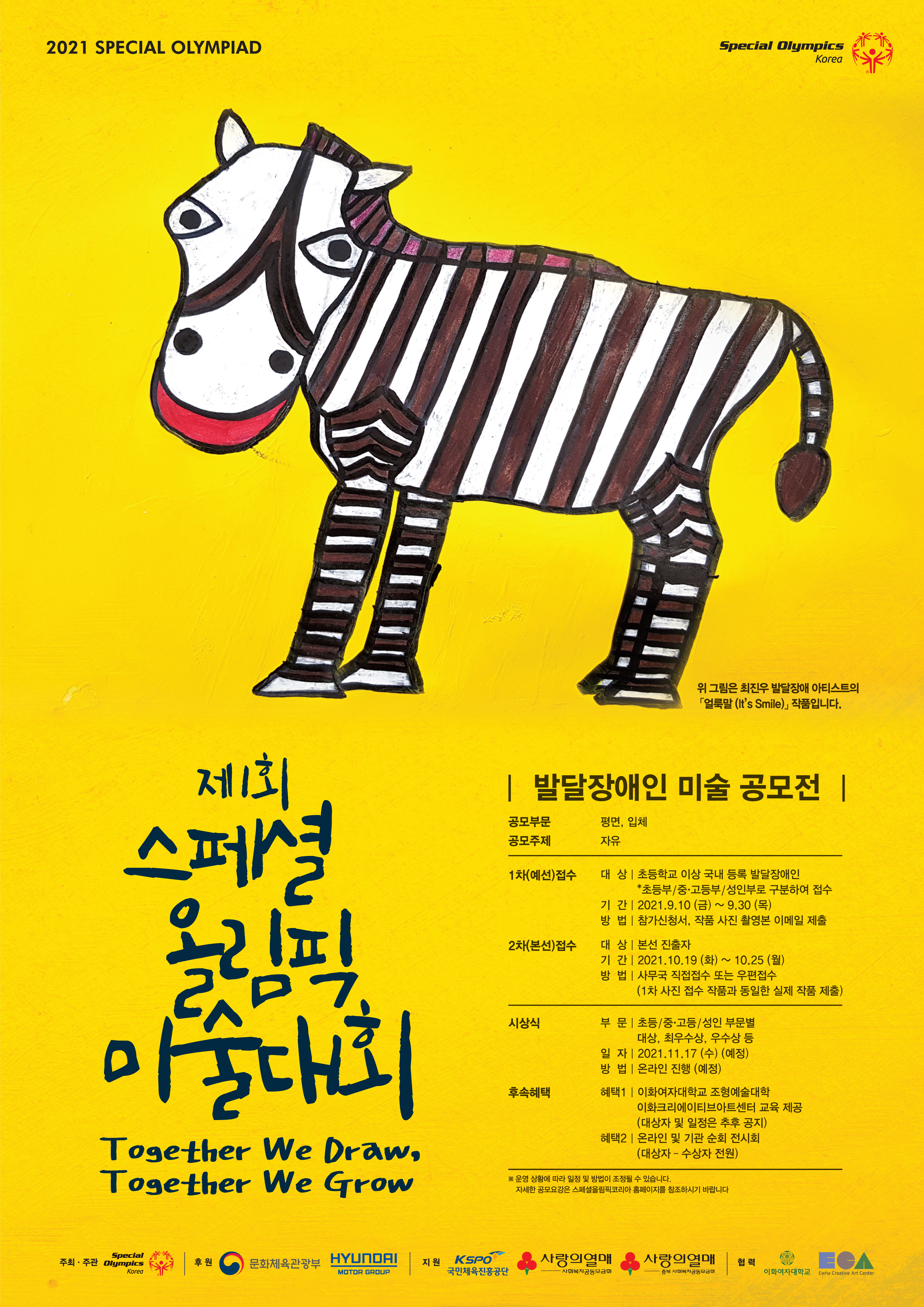※ 문의처: 스페셜올림픽 미술대회 운영사무국 T. 02-567-9621 / E. soac@sokorea.or.kr / 문의시간 10:00~17:00