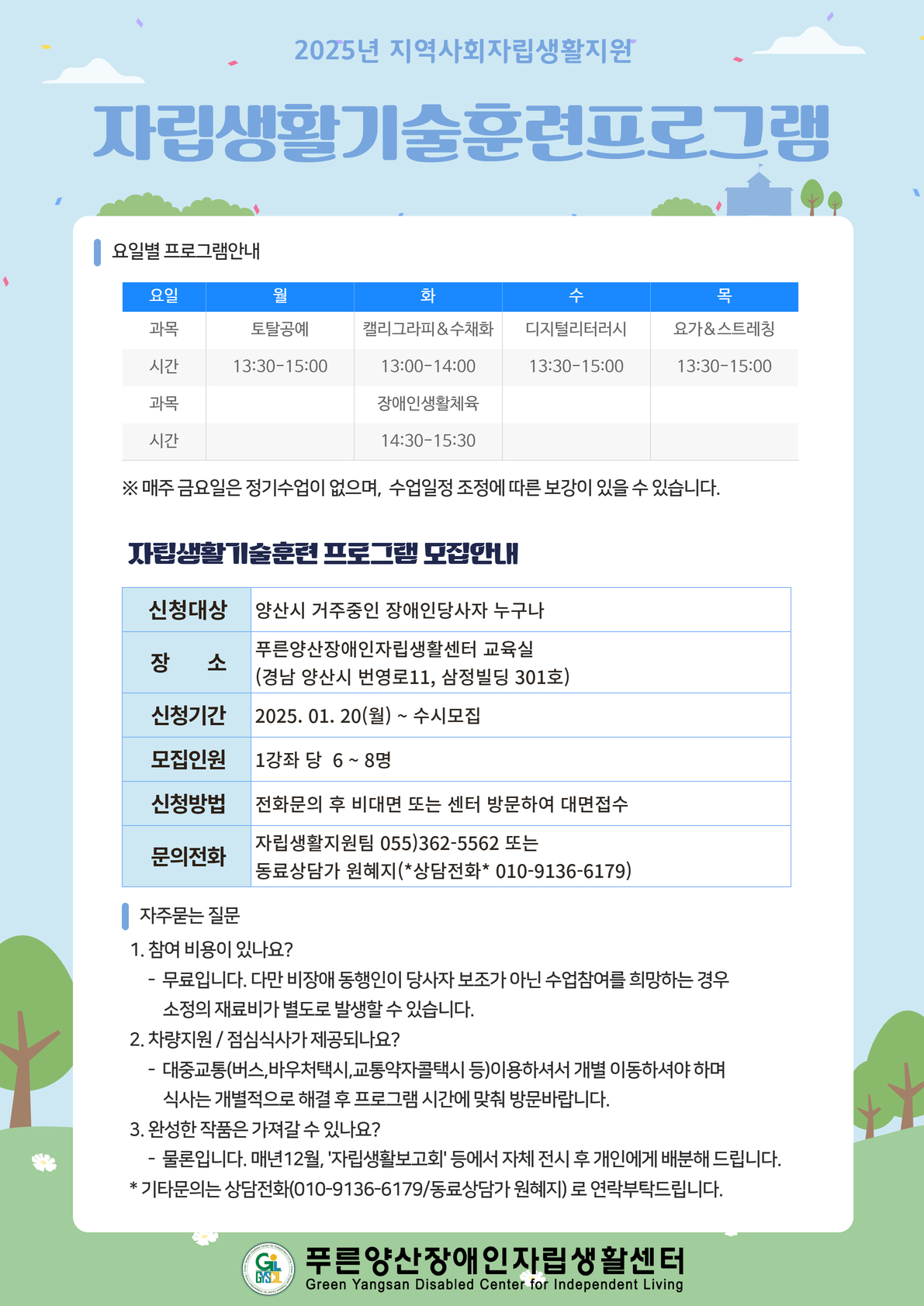 강의장소 : 푸른양산장애인자립생활센터 (양산시 번영로11, 삼정빌딩 3층) 교육실