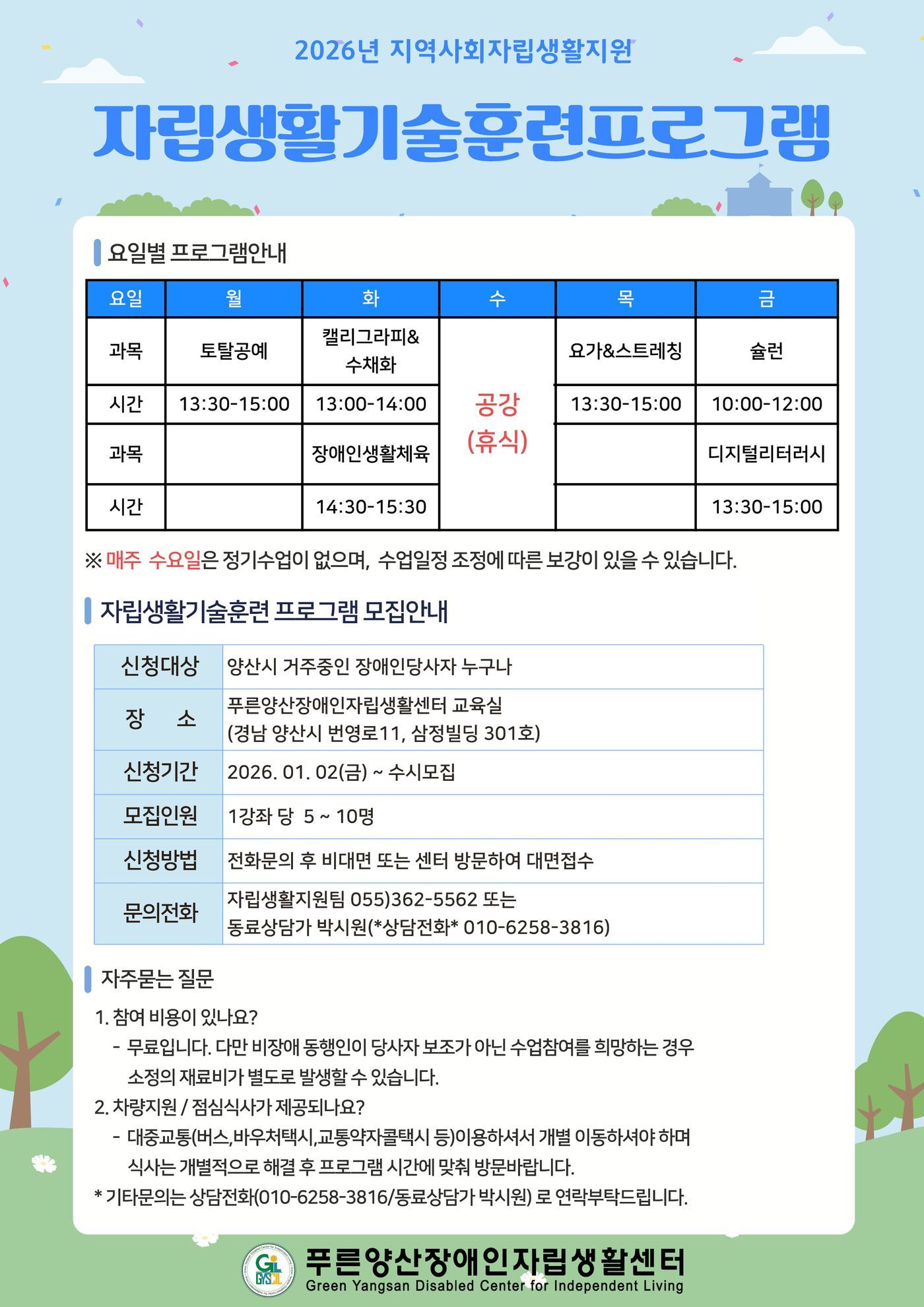 [모집/안내] 2026년 자립생활기술훈련프로그램(ILP)참여자 모집&2월 일정안내