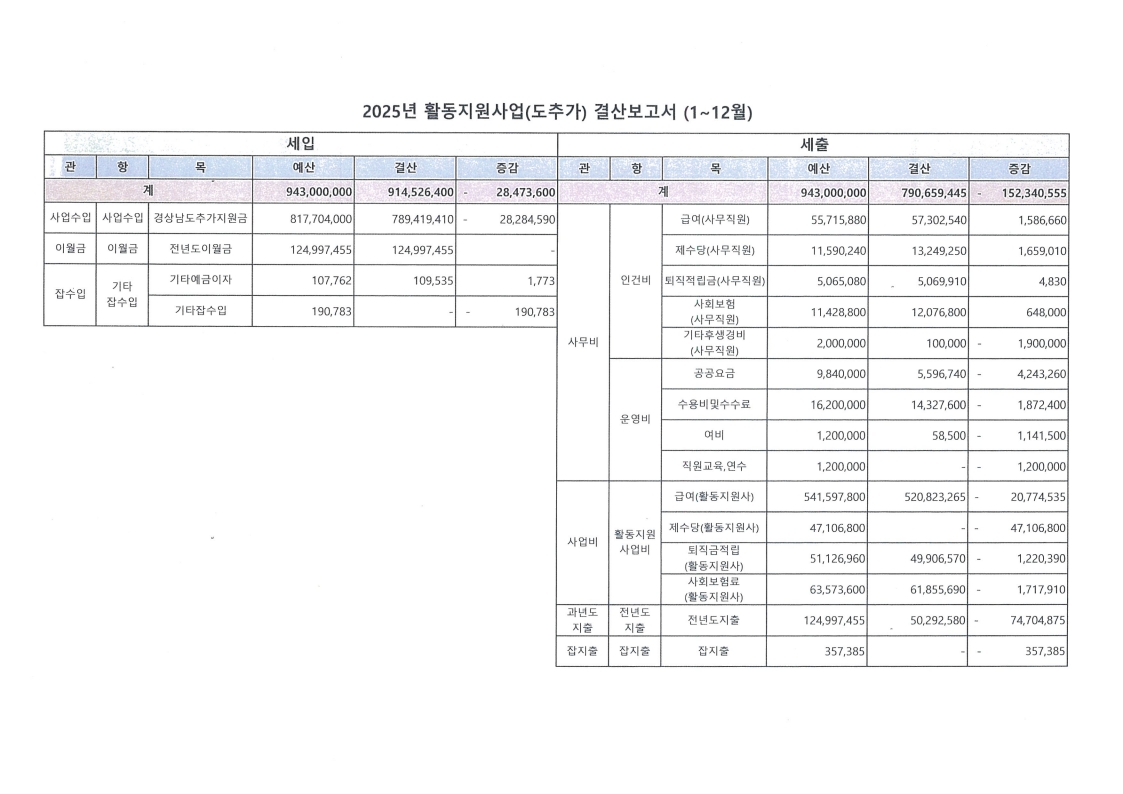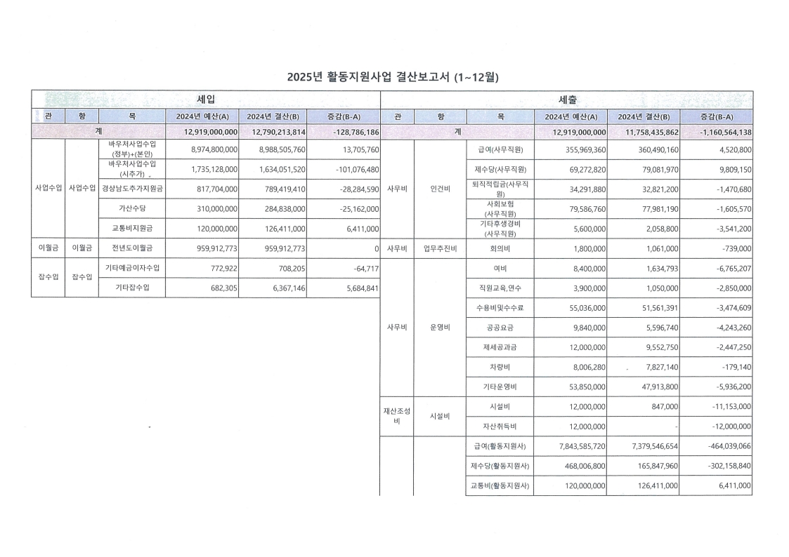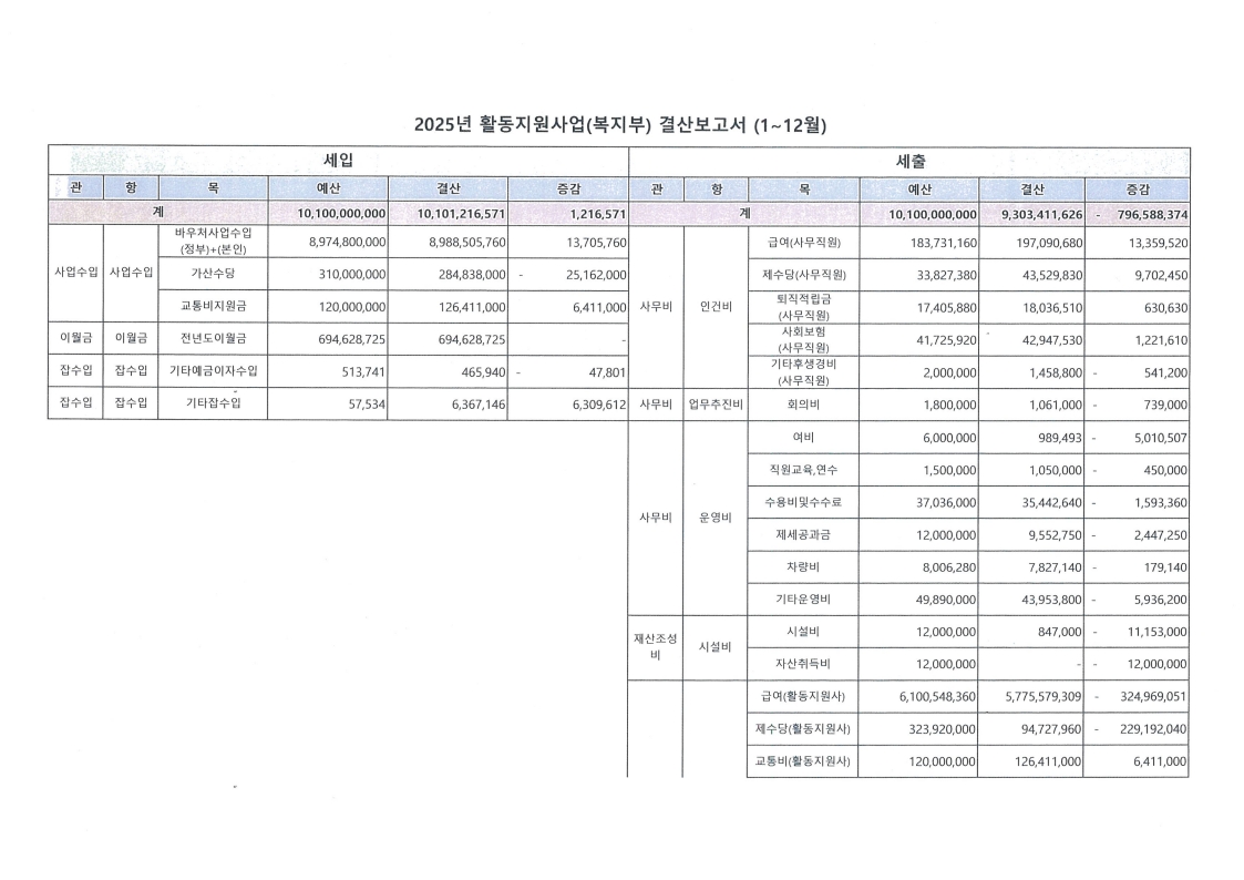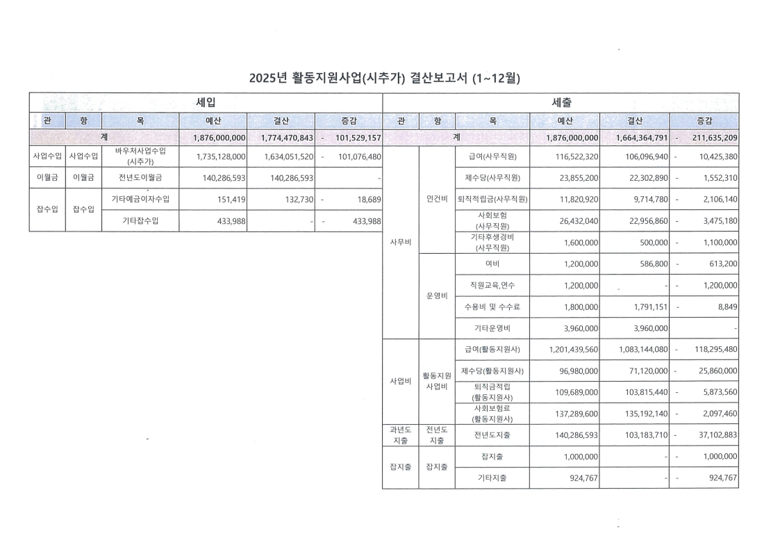 내 용 : 사)푸른양산장애인자립생활센터 2025년도 활동지원사업 결산보고서(1~12월)