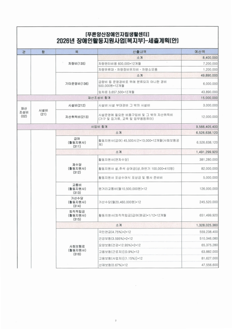 사)푸른양산장애인자립생활센터 2026년도 활동지원사업 수정예산