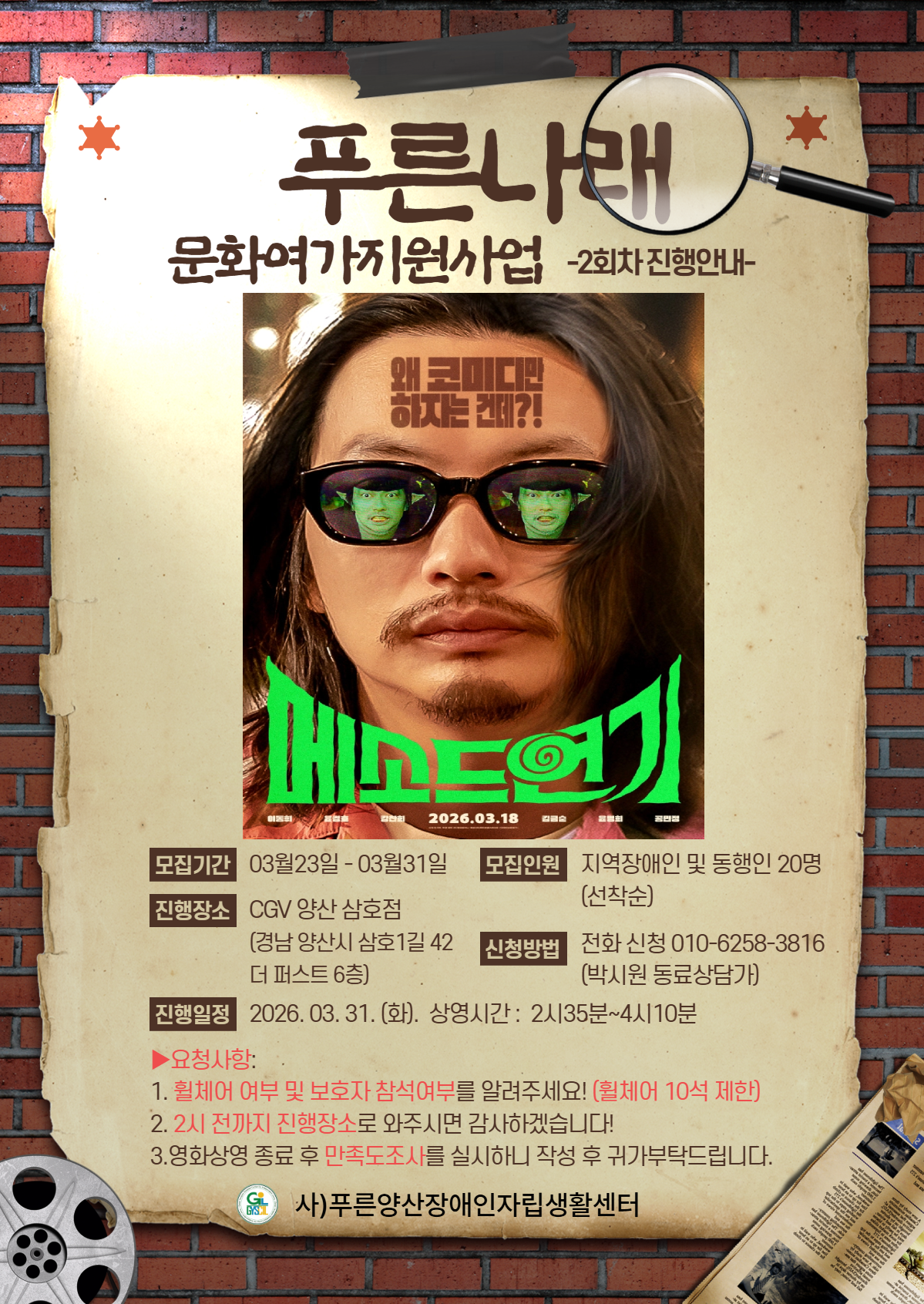 [홍보/모집]2026년 문화여가지원사업푸른나래 2회차 참여자 모집 - 영화 '메소드연기' 관람