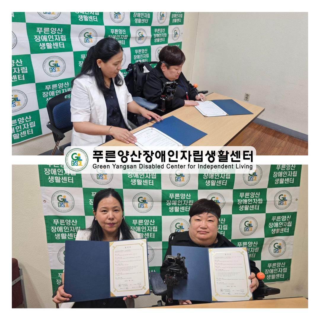 저희 푸른양산장애인자립생활센터와 웅동지역아동센터가 업무협약을 체결하였습니다. 양 기관의 상호협력과 발전을 기원합니다.