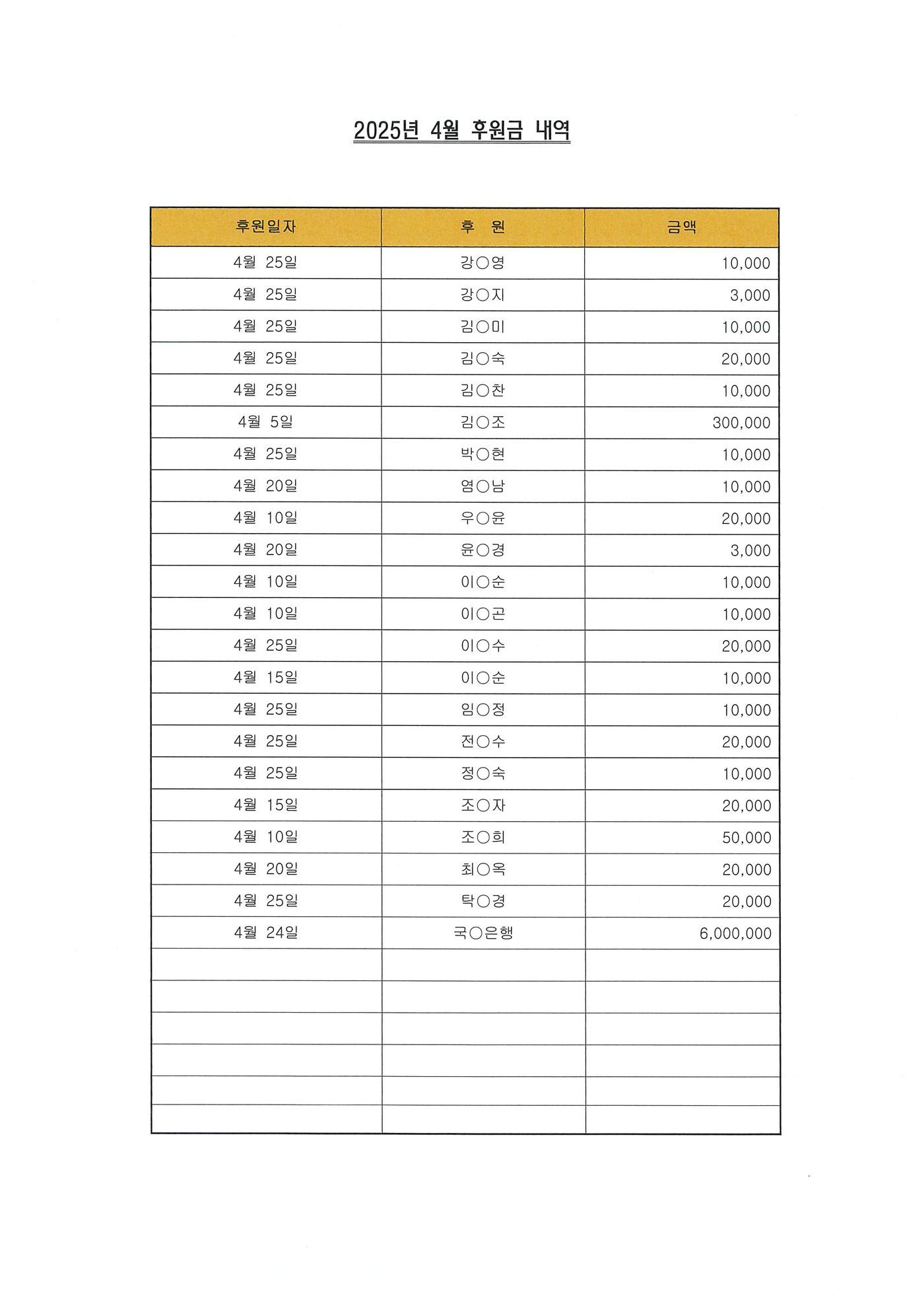 2025년 4월 후원내역입니다.