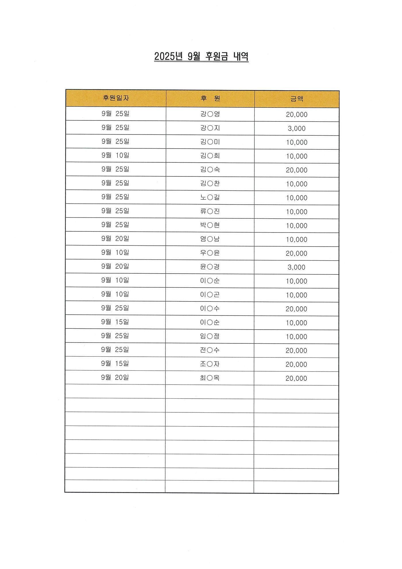 2025년 9월 후원내역입니다.